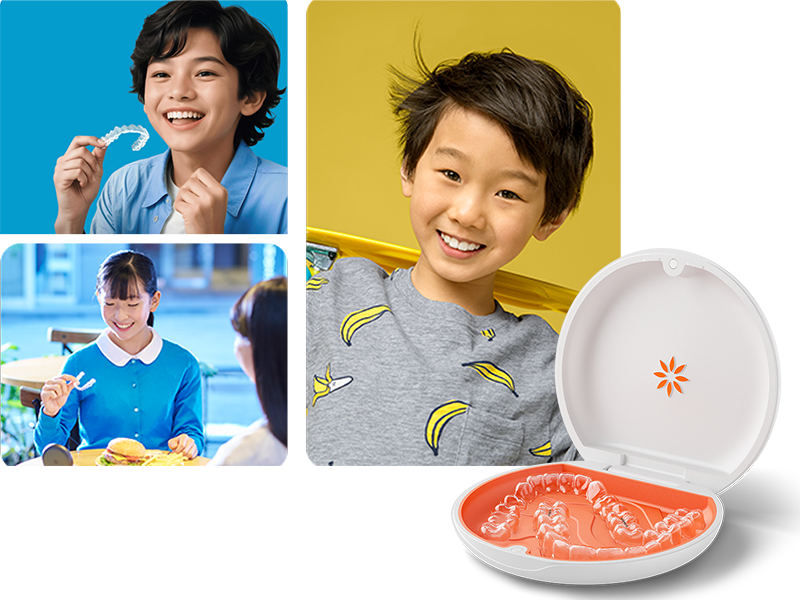 矯正治療をためらう理由の一つに「装置が目立つ」という不安があります。当院がご提案するインビザラインは、透明で薄いマウスピースを使用するため、周囲に気づかれにくいのが大きな特長です。接客業や人前で話す機会が多い方、学生の方でも安心して装着できます。また、ワイヤーやブラケットが口の中に当たることで生じる痛みや口内炎のリスクも少なく、快適に矯正を続けられます。アライナーは取り外し可能なので、食事や歯磨きの際に従来の矯正装置よりも自由度が高く、日常生活への影響を最小限に抑えられます。